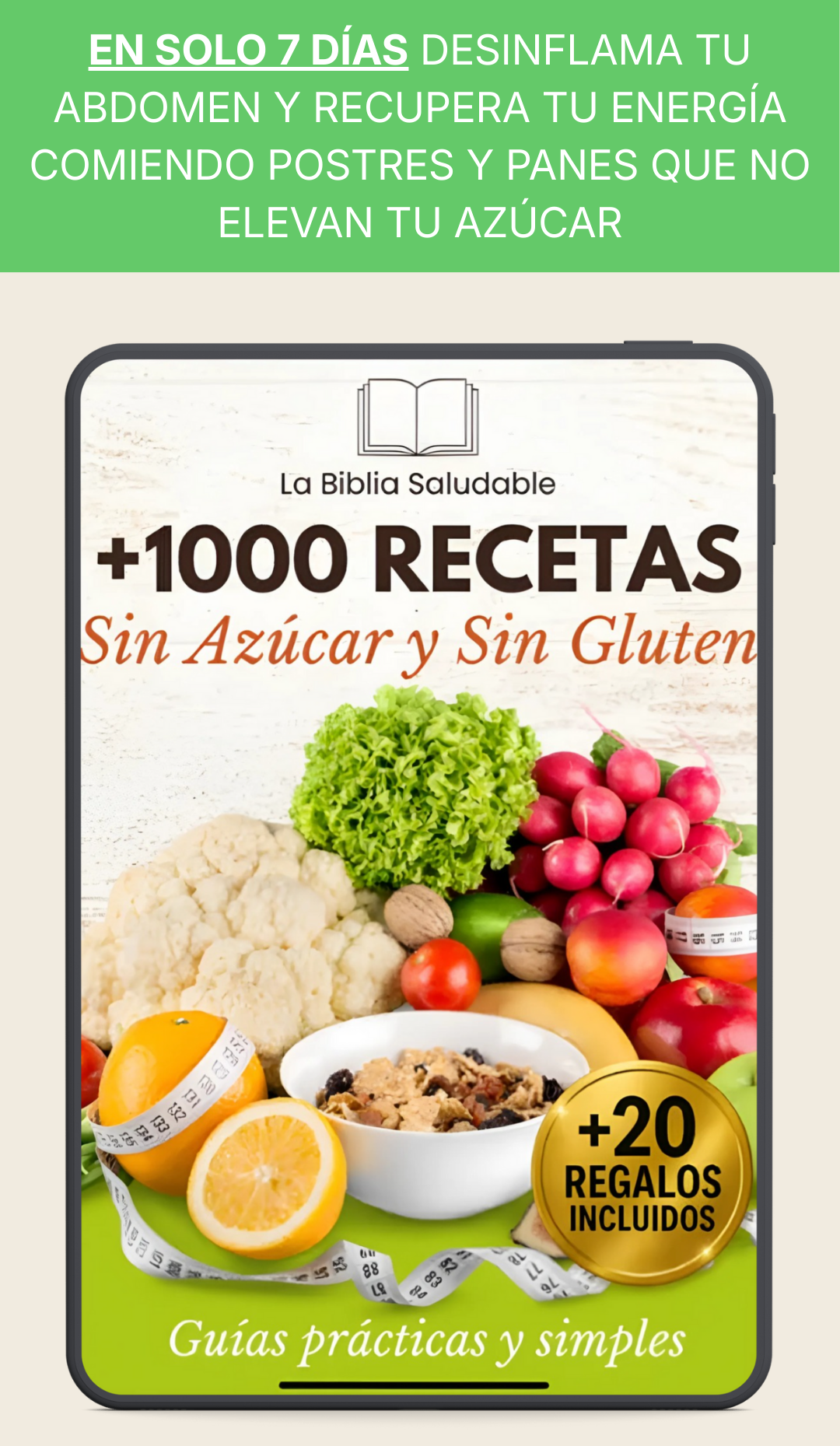 El libro incluye una variedad de recetas 100% libres de gluten y azúcar refinada, abarcando desayunos 🥞, almuerzos, cenas 🍲 y postres 🎂. Están diseñadas para ser deliciosas, fáciles de preparar y aptas para personas con sensibilidad al gluten, diabetes o que simplemente buscan un estilo de vida más saludable sin sacrificar el sabor.